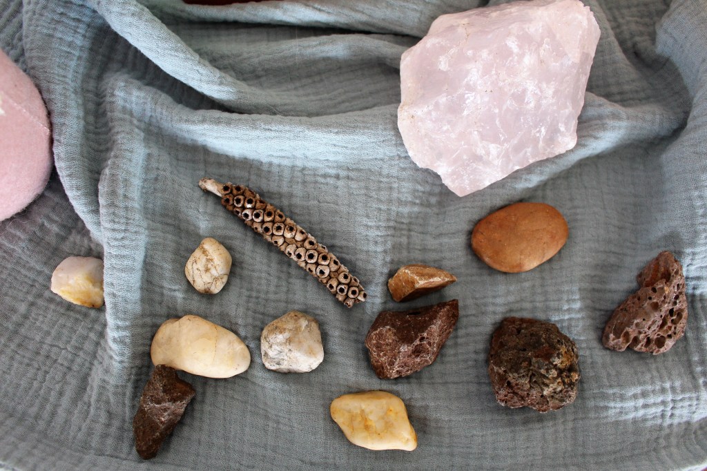 - Finally, add elements from the natural world which have been collected on your outdoor adventures; fresh flowers, rocks, shells or grasses can all be included.